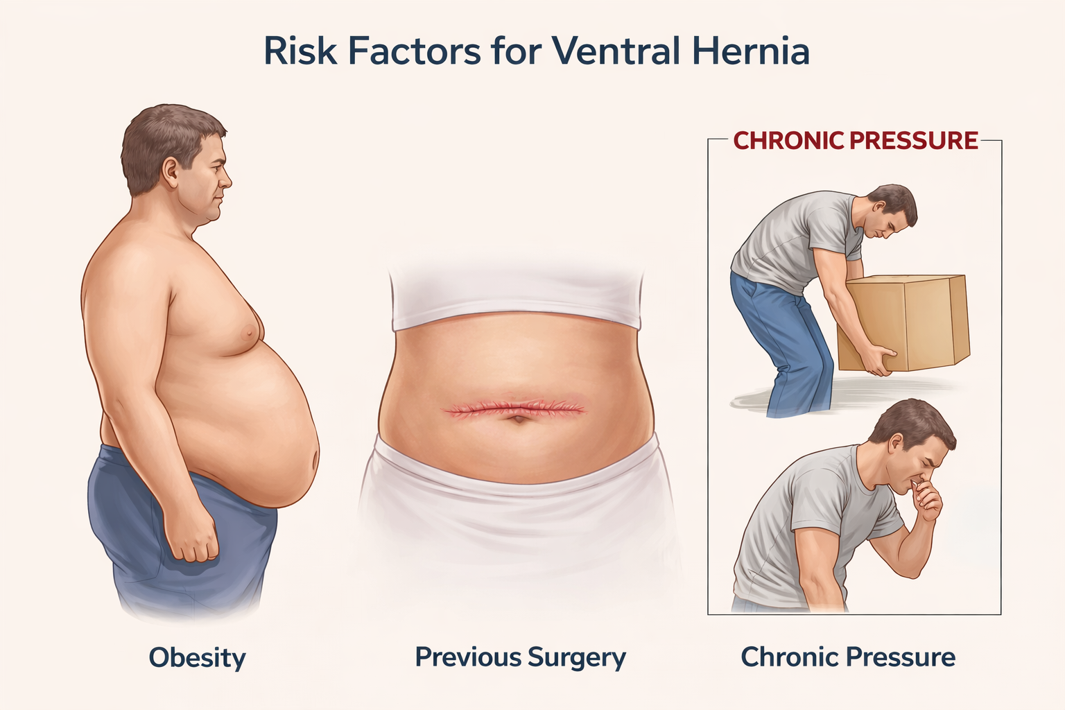 A ventral hernia is not just a cosmetic bulge. It is a structural defect in the abdominal wall that can enlarge and lead to serious complications if ignored.